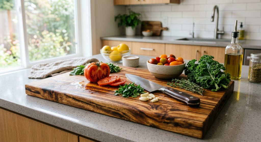 Acacia Wood – Strength Meets Elegance is known for its toughness and resilience. It is naturally resistant to scratches, making it an excellent choice for cutting boards and heavy-use kitchen tools.