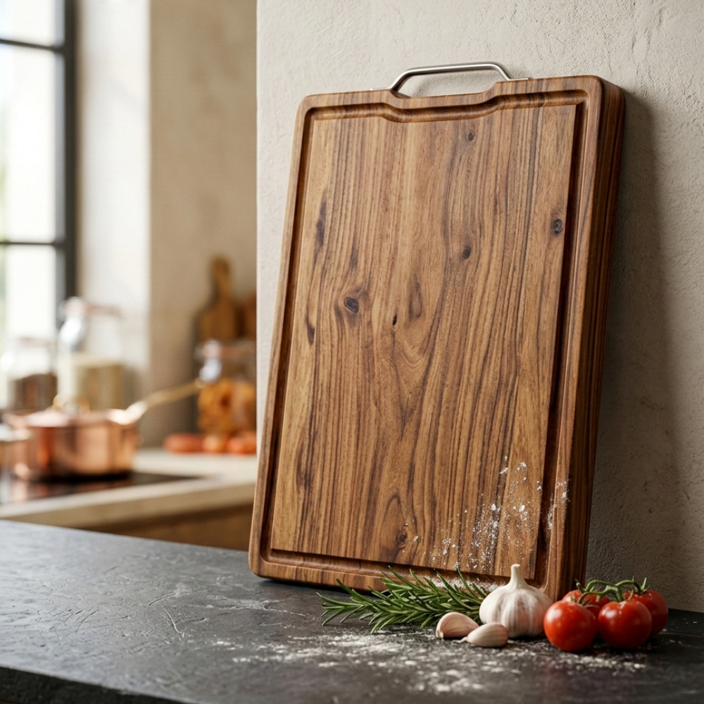 Bring warmth and authenticity into your kitchen with these beautifully Handcrafted Wooden Chopping Boards – Brightwayimpex. Designed to blend rustic charm with modern minimalism, this board is more than just a kitchen tool — it’s a statement piece. The rich wood grain patterns, smooth contours, and sturdy handle reflect timeless craftsmanship while offering everyday practicality.