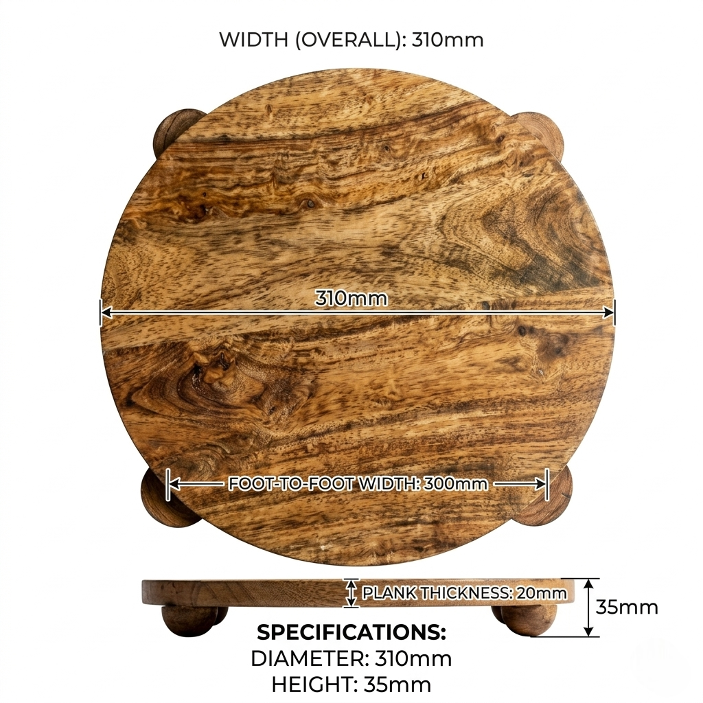 • Shape: Classic round board with sturdy, well-balanced legs for elevated support.